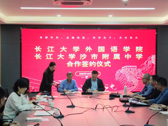 (通讯员 王娟)10月14日上午,太阳成集团tyc234cc与太阳成集团tyc234cc沙市附属中学合作协议签约仪式在沙市附属中学二楼会议室顺利举行。双方代表齐聚一堂,共同见证校地合作迈向更深层次、更宽领域的重要时刻。